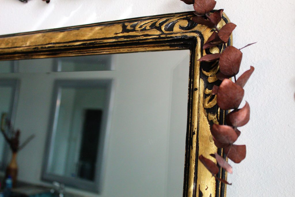 Hello beauties! I wish you a great start to the week before Christmas! Today I’m sharing with you how I gave this very special mirror a new look in three simple steps. A client asked me if I could revamp her family heirloom mirror. Any time I work on an antique or an item of special sentiment, I want to be sure I am preserving the integrity of that piece. Although adorned with richly carved details, the brassy-orange finish just had to go. It was calling for an updated and classy updo!
