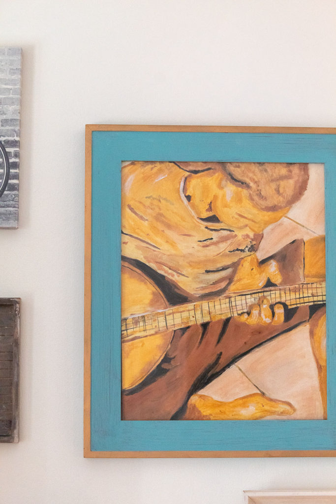 A beautiful thing about gallery walls is that you can rotate your art or photographs from time to time. This keeps things fun and fresh. It’s also a great place to show off your family’s art work. Here we have a drawing from my teenager when he was little and a decoupage piece gifted to me by my very talented and famous artist in Costa Rica, Ana Griselda Hine.