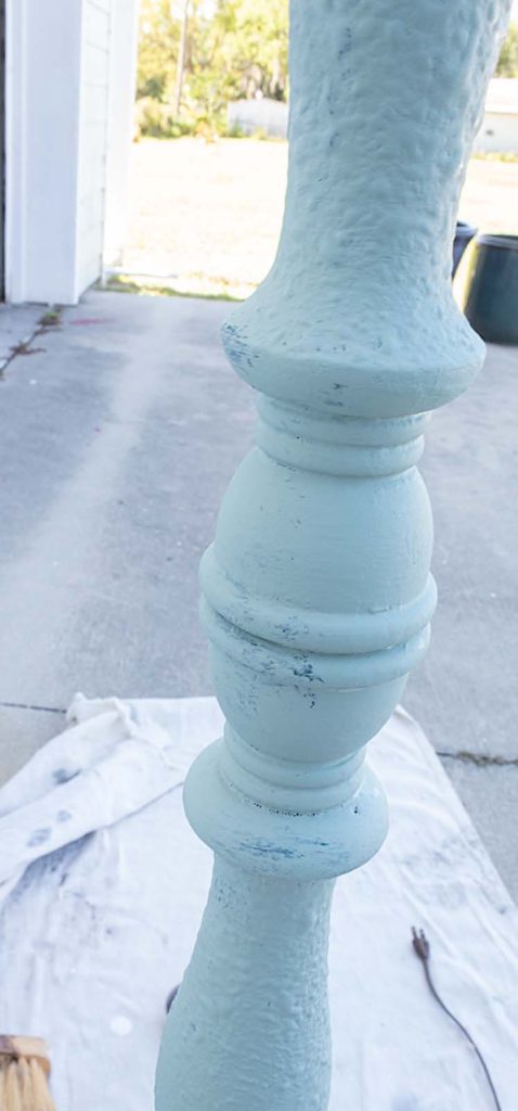 I used my misting bottle on the second coat since I already had a base of chalk paint to work with. I would spray occasionally to help move the paint and get it into all the nooks and crannies of the stem of this lamp.